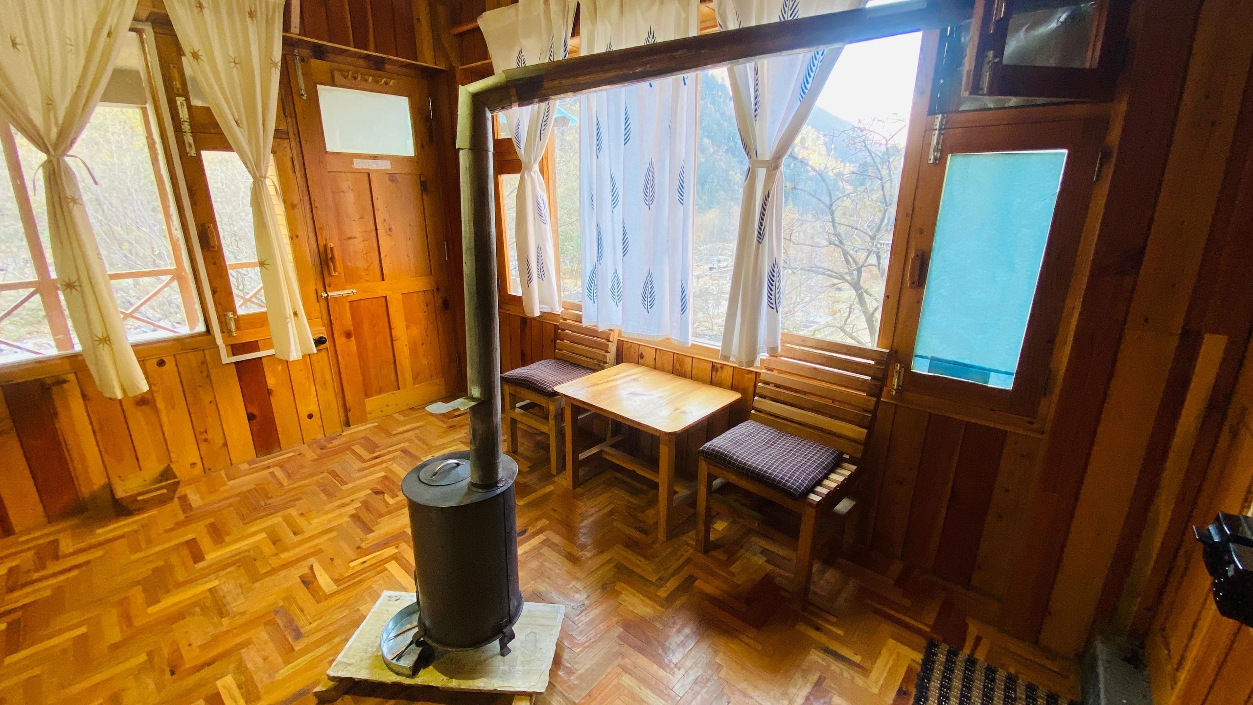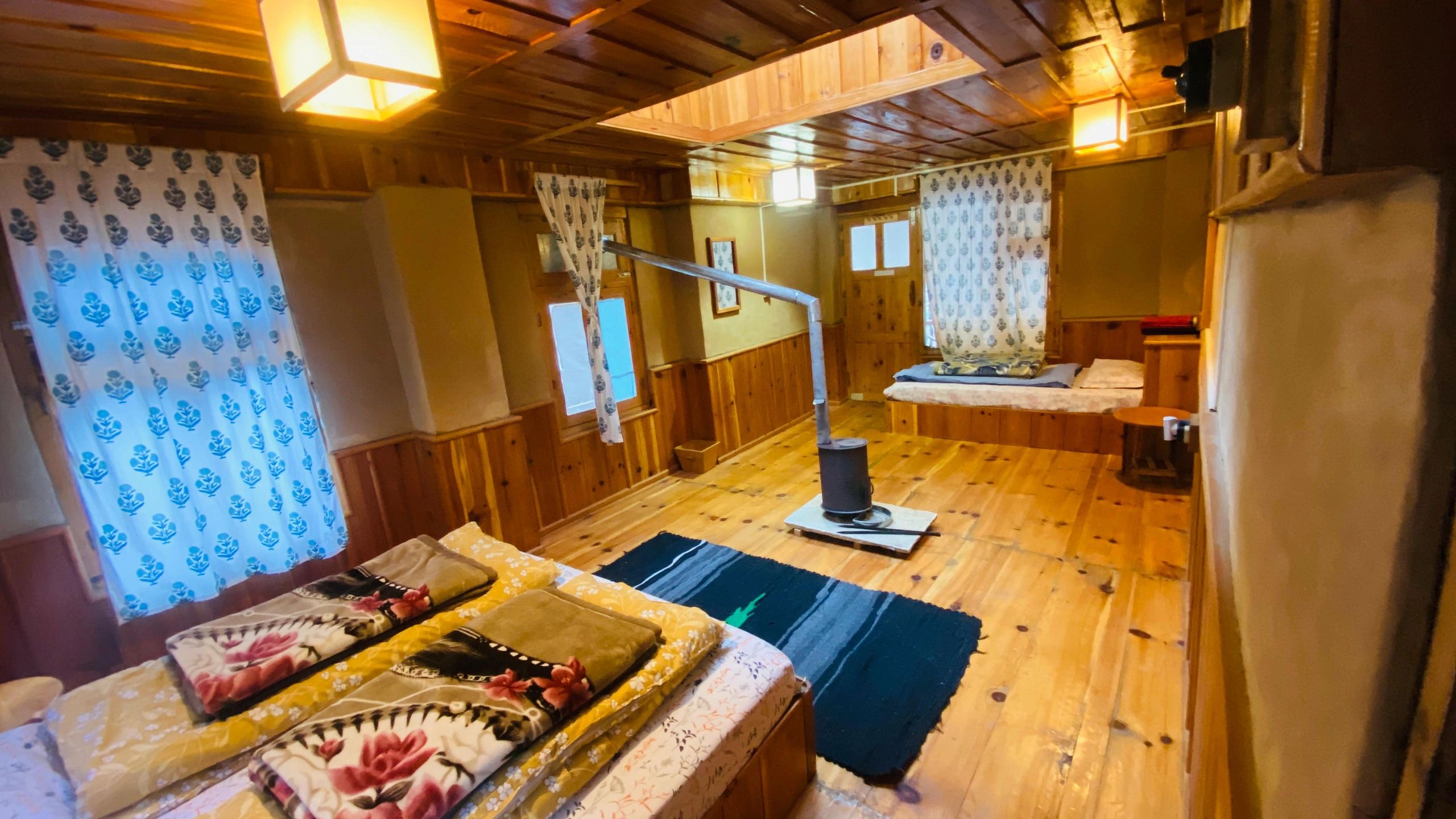 Come stay with us in our cottages, a modern blend of the artistic old, combining wood, stone and mud architecture in the original kath guni style architecture. Everything reclaimed from the land we are based upon. We strive to provide an experience which has continued for ages, but with a modern twist. The deodar and the stones speak for themselves, the stones have a history of their own, the soil from the earth binding them all together.